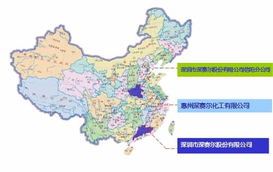 深賽爾公司在深圳市龍崗區CBD商圈,擁有“深圳市市級研究開發中心(技術中心類)”,服務于中國北方市場的戰略基地位于河南省信陽市,服務于中國南方的戰略基地位于惠州市鴻海精細化工基地。公司向全國各大城市提供快速、便捷的技術服務,具有規模化的技術研發、生產制造、技術服務和市場銷售的網絡體系。
