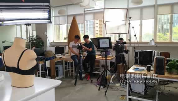 映畫影視攝像師拍攝女主持人講解內衣的材質、剪裁、工藝、設計等細節的特寫。主持人表現效果特別流暢,氣氛很活躍,這一次合作很愉快!